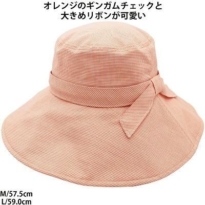 つば広ハット 1263102ギンガム オレンジ 帽子 ギンガムチェック 女優帽 レディース 婦人 ハット 紫外線対策 UVケア UVカット 日よけ カジュアル 日本製 ネット通販 春夏